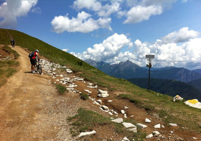 Il monte simbolo del Garda bresciano, a cavallo tra la Lombardia e il Trentino, è ricchissimo di sentieri da percorrere in MTB e grazie alle sue fortificazioni risalenti al primo conflitto mondiale è un vero e proprio museo a cielo aperto. Tra paesaggi mozzafiato, sterrate impegnative, strade militari ben conservate e gallerie scavate nella roccia, questa escursione in mountain bike è un must tra gli itinerari e-bike in Lombardia che può essere affrontata da diversi versanti, con dislivelli più o meno impegnativi e difficoltà variabili. Questa versione del Tremalzo in mountain bike è un anello che inizia dalla frazione di Vesio, la frazione più popolosa di Tremosine, a quota 618 sopra il lago di Garda, lungo la sponda bresciana.