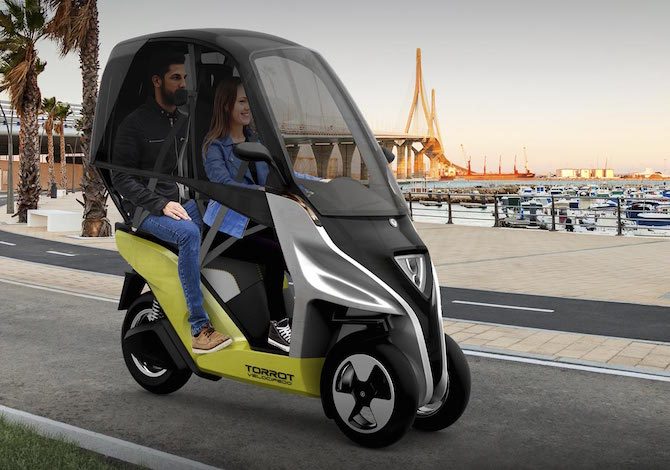 La sicurezza di un’auto, l’agilità di una moto, la pulizia di un mezzo elettrico. Sono i concetti che stanno dietro questo Velocipedo, veicolo a 3 ruote ad alimentazione elettrica prodotto dalla spagnola Torrot e in arrivo sul mercato nel 2018.