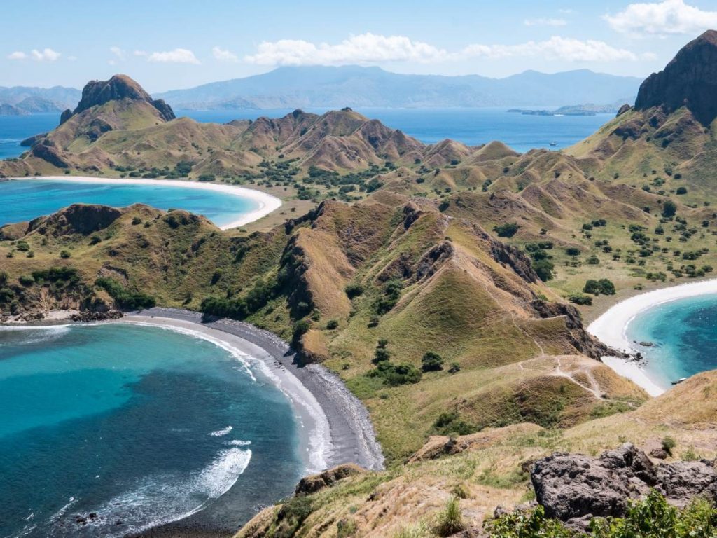 L’isola di Padar mostra un panorama incredibile composto da 3 ampie baie con sabbia bianca, nera e rosa visibili contemporaneamente. Oltre ai famosi rettili preistorici, l’area protetta vanta fondali ricchi di coralli in cui nuotano mante e delfini. A circondare banchi di sabbia sottili che emergono durante la bassa marea ci sono, invece, acque totalmente trasparenti.