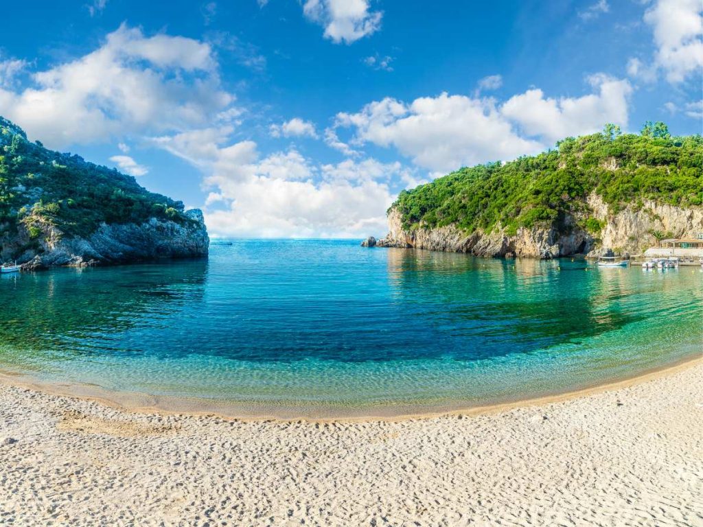 L’isola di Corfù ospita Paleokastritsa Beach, una baia riparata in cui il mare appare immobile e limpido. La conformazione della costa, ricca di insenature e grotte raggiungibili solo via imbarcazione, stimola il desiderio di esplorazione. Diversi ristoranti tipici affacciati sulla baia propongono piatti della tradizione locale, permettendo di alternare i tuffi a pause gastronomiche di alto livello.