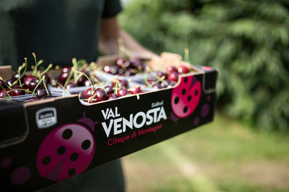 Cosa rende uniche le Ciliegie Val Venosta? Simbolo dell’estate, le ciliegie della Val Venosta presentano un’incantevole silhouette tondeggiante o cuoriforme e custodiscono un dolce aroma, unico nel suo genere. Infatti, cullati da una leggera brezza e abbracciati dai caldi raggi del sole, i graziosi frutti maturano lentamente e hanno tutto il tempo di sviluppare un’incredibile dolcezza accompagnata da una piacevole punta di acidità. E poi sono ricche di vitamine e sostanze minerali, dunque buone, belle e anche salutari! L’habitat della valle è il luogo ideale perché le ciliegie crescano in tutto il loro splendore e maturino deliziose tonalità di sapori. L’altitudine di coltivazione, tra gli 800 e i 1300 metri di quota, contribuisce a conferire alle ciliegie un sapore ancora più intenso e una croccantezza impareggiabile.