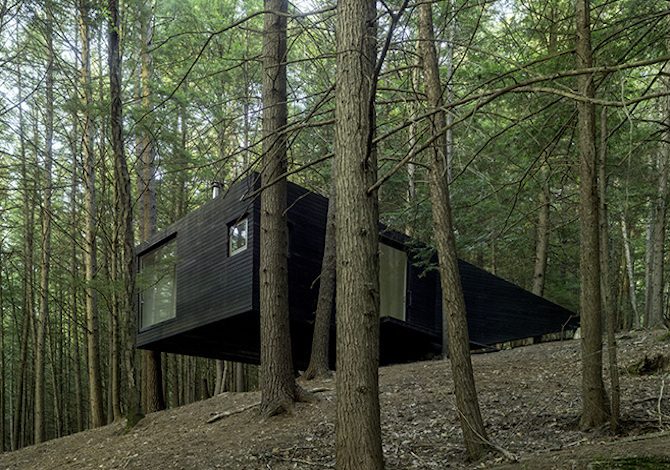 Quella di Jacobshang Architecture è una moderna capanna off-grid da 109 metri quadrati. Un progetto che è stato realizzato da una famiglia newyorkese per avere un rifugio spartano in cui andare il weekend. Sta in una foresta di 60 acri nella contea di Sullivan, stato di New York. La Half-Treehouse è stata costruita con un budget limitato di 20.000 dollari, tutta in legno.