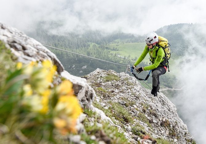 Partendo dal Passo di Monte Croce nel giro di un’ora e mezza circa si raggiunge un piccolo canalone detritico. “Il primo tratto della via ferrata, dove l’uso del set da ferrata è imprescindibile, inizia con un grado di difficoltà C. Anche dopo la ferrata rimane impegnativa (C/D) e soltanto nel secondo terzo si passa a un terreno più semplice”, spiega Christian Sordo. Il direttore della Scuola di Alpinismo Sesto Tre Cime, lui stesso guida alpina, consiglia di affrontare la cima del Campanile Colesei in senso orario.