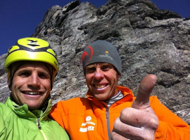 “Ce l’abbiamo fatta!” Dopo 14 ore di scalata Roger Jasper (GER) e Roger Schaeli (CH) si abbracciano dopo aver conquistato la parete nord dell’Eiger con la prima ascensione libera della Ghilini – Piola Direttissima, superando difficoltà di 9° grado e condizioni in parete di vera incertezza. Un sogno, quello della Ghilini – Piola Direttissima sulla parete nord dell’Eiger, cullato dai due alpinisti per ben 7 anni, dopo quel primo tentativo del 2006 abbandonato a causa di una tempesta di neve. Ora ci sono riusciti, realizzando la prima ascensione libera e non-stop in team di questa lunga via (redpoint 7c o IX).