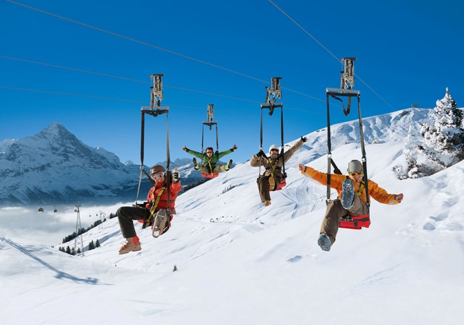 Non è uno sport ma comunque un’attività outdoor da brividi. A Grindelwad, nell’Oberland bernese, una nuova zip line attira qui arditi da tutta Europa: la First Flieger permette di scendere a valle “seduti” su una fettuccia di stoffa e letteralmente appesi nel vuoto ad un cavo.