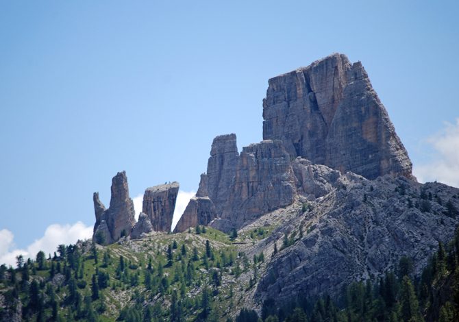 Tra Cortina d’Ampezzo e il passo Falzarego si apre uno degli scenari più spettacolari delle Dolomiti, dominato dal profilo inconfondibile delle 5 Torri.