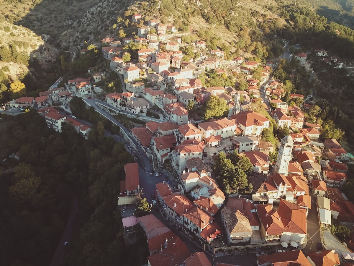 Non è una metafora. È una regione greca con strade tortuose, villaggi in pietra a mille metri di quota, gole dove scorrono fiumi gelati e un crinale montuoso che in luglio regala temperature che le isole greche non possono offrire.