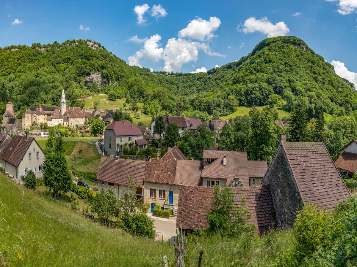 La reculée, infatti, rappresenta una formazione geologica specifica del massiccio del Giura, consistente in una valle che termina bruscamente contro una parete rocciosa altissima. Il processo di creazione risale a milioni di anni fa e le pietre calcaree, modellate dagli agenti atmosferici attraverso le ere, proteggono il nucleo storico conferendogli un aspetto di inattaccabile solidità.