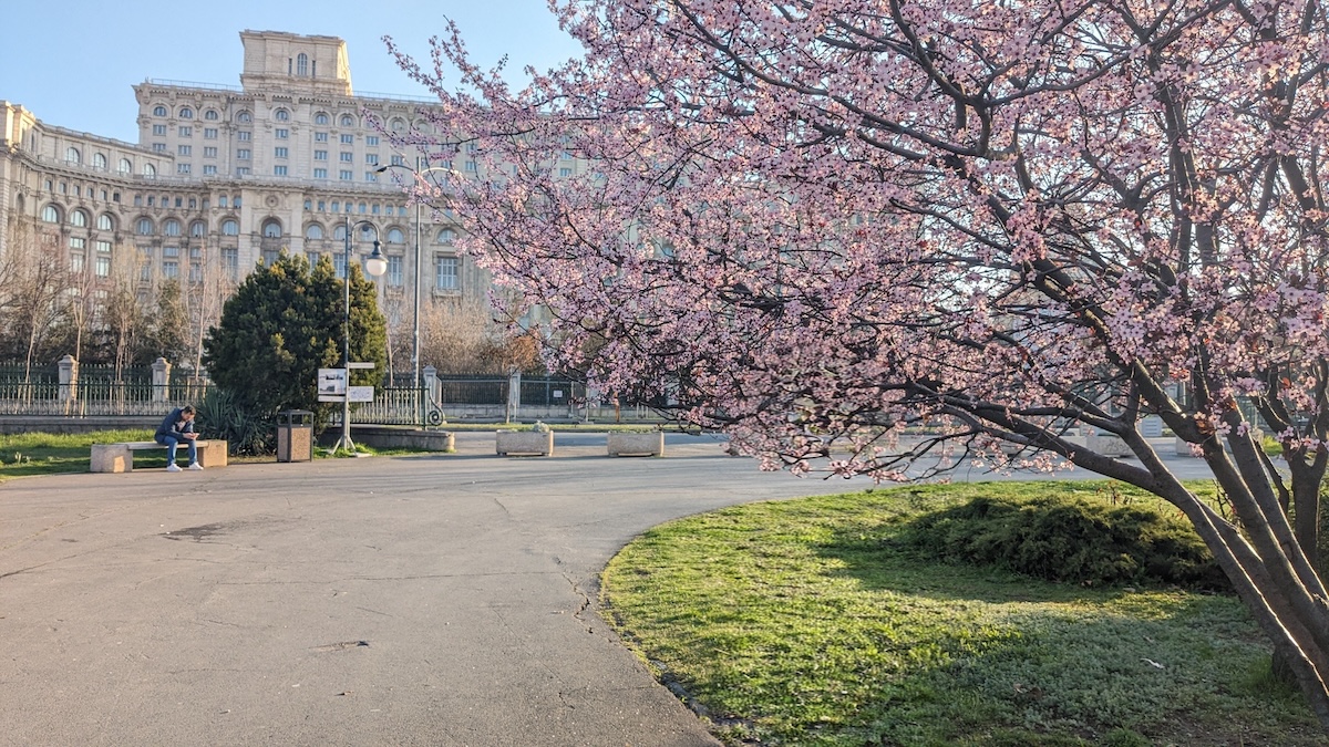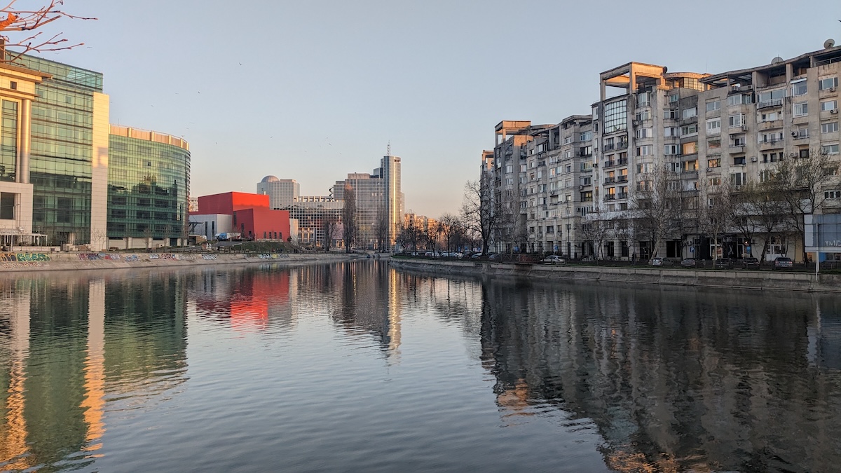 Il Boulevard scende fino alla Dâmbovița, il fiume di Bucarest, e lì c’è un’ansa con palazzi eleganti, terrazze, qualche bar con i tavoli fuori. Nelle giornate di sole — e in primavera Bucarest ha giornate di sole bellissime — è il posto giusto per un aperitivo prima di riprendere il bus verso l’aeroporto.
