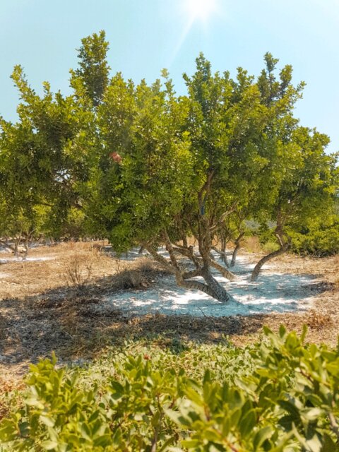 Chios è là, vicino alla Turchia, a nord di Ikaria. Prima di parlare di spiagge o villaggi, bisogna capire il mastice. Perché a Chios tutto parte da lì. Il mastice di Chios — in greco mastiha, chiamato anche “le lacrime di Chio” per la forma a goccia in cui cola dall’albero — è una resina prodotta dall’albero del lentisco che cresce solo qui, nel sud dell’isola, grazie a una combinazione di suolo, microclima e tecnica agricola tramandata da secoli. Ha ottenuto la denominazione di origine protetta europea ed è l’unico posto al mondo dove questo tipo di lentisco produce la resina in quantità significativa.