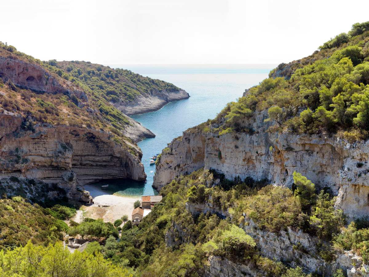 Pagaiando verso sud si raggiungono insenature accessibili solo via mare, come la celebre baia di Stiniva, racchiusa tra due alte pareti di roccia che si toccano quasi a formare un portale naturale. Sotto la superficie, i subacquei possono esplorare relitti storici rari, tra cui si evidenzia il bombardiere americano B-17 Flying Fortress che è adagiato sul fondale a 70 metri di profondità dall’ormai lontano 1944 (sì, è per i subacquei esperti).