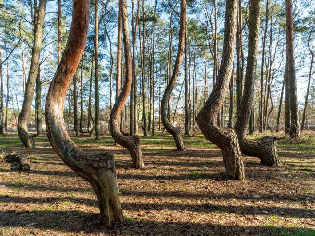 Infine Krzywy Las, ovvero la “Foresta Storta” della Pomerania che è uno dei più grandi enigmi botanici del mondo. Con circa 400 pini che presentano tutti una strana curvatura a 90 gradi alla base del tronco, nel corso dei secoli ha affascinato viaggiatori e studiosi da ogni parte del pianeta. Nonostante le numerose teorie, dal passaggio di carri armati durante la guerra a tecniche agricole segrete, il motivo di questa deformazione resta ancora oggi un mistero.