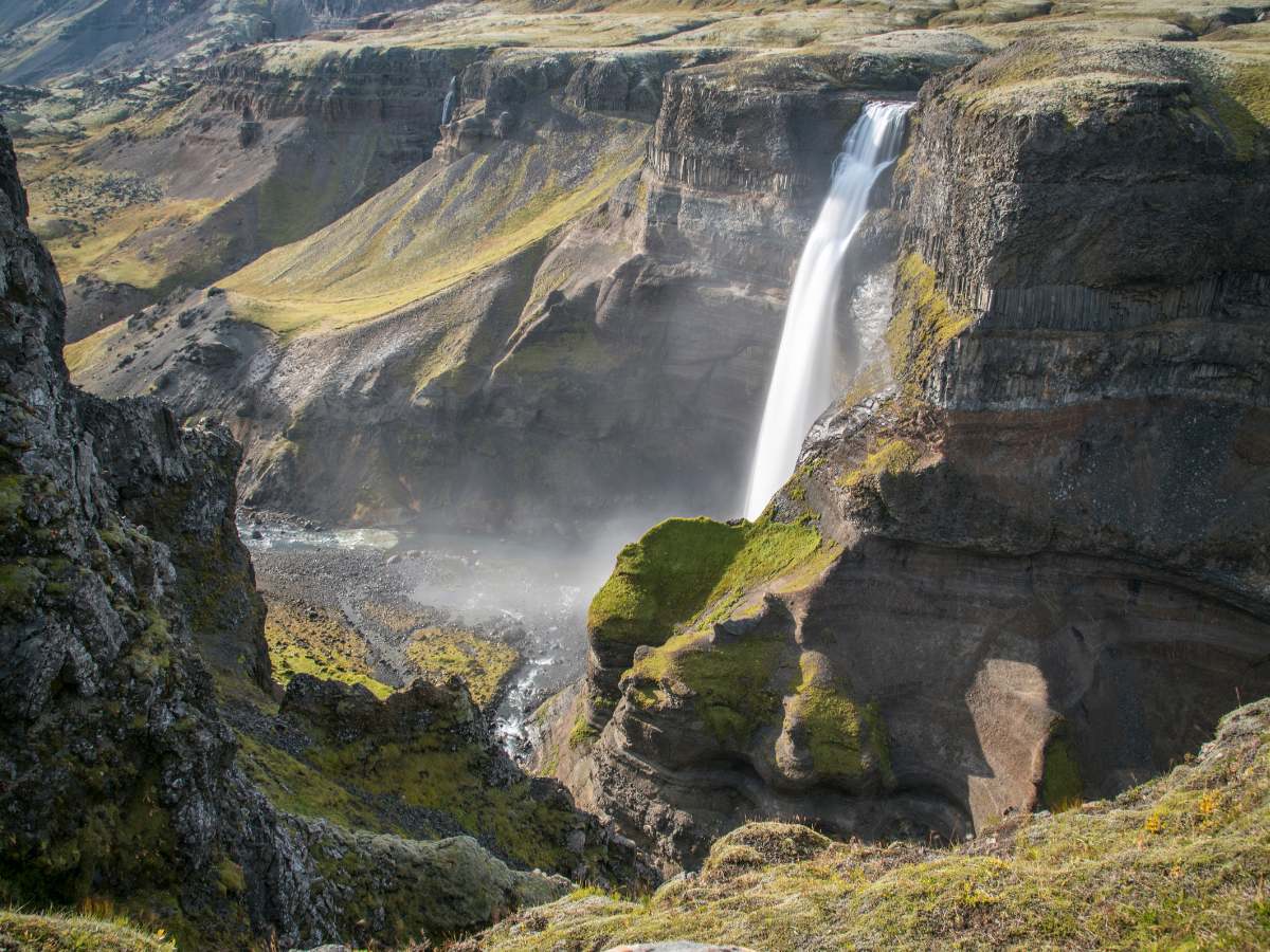 - Le Gemelle dell’Abisso: dal belvedere principale di Háifoss, lo sguardo cattura due cascate che precipitano fianco a fianco nello stesso canyon. Ci sono la maestosa Háifoss e la sua “vicina” Granni che insieme danno vita a una visione binaria potente, un set naturale che pare uscito da un sogno.