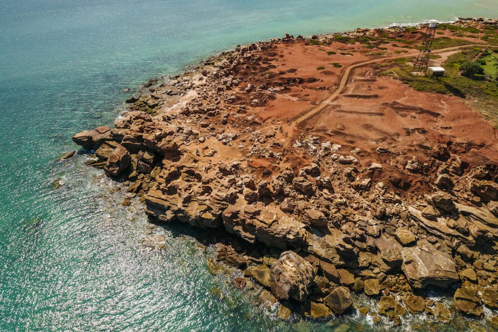 A Gantheaume Point, dove le scogliere rosse si gettano a capofitto nel mare blu, è possibile ammirare un reperto storico incredibile: le impronte di dinosauri impresse nella roccia corallina, risalenti a circa 130 milioni di anni fa.