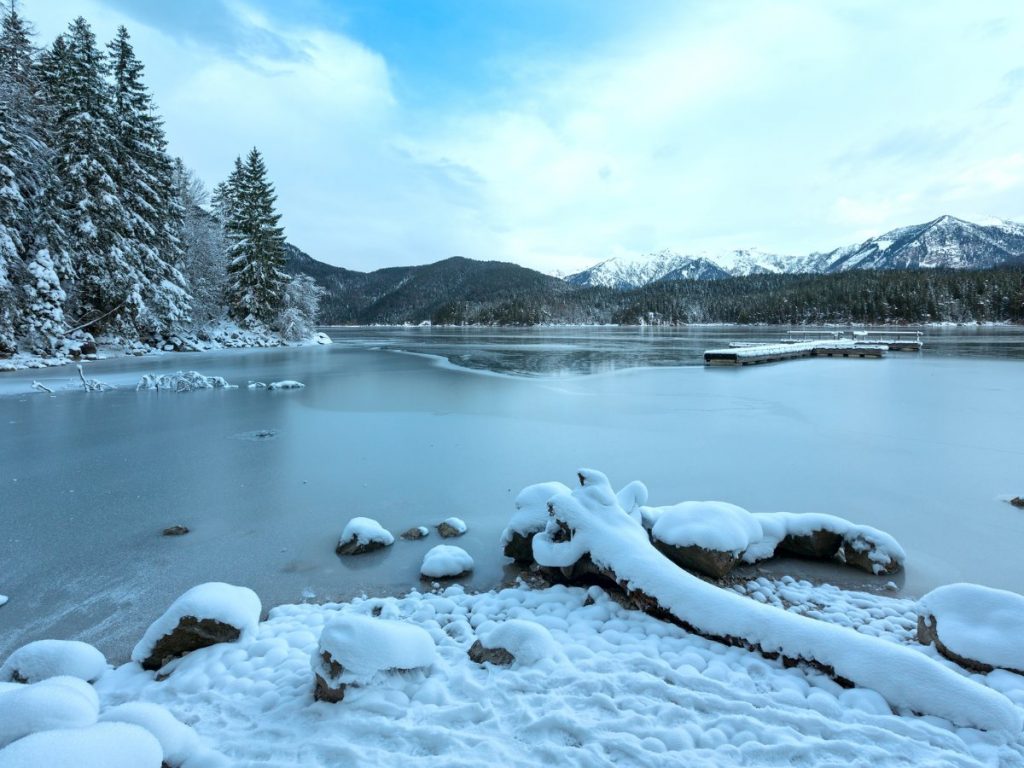 Situato ai piedi della maestosa Zugspitze, la vetta più alta della Germania, il Lago di Eibsee è celebre per le sue acque dalle sfumature turchesi che rimangono limpide anche sotto lo zero. In inverno, i sentieri che lo circondano fanno posare lo sguardo su scorci drammatici sulle pareti rocciose innevate e sugli isolotti che punteggiano il bacino. È la destinazione ideale per chi desidera combinare una camminata rigenerante con la fotografia paesaggistica d’alta quota.