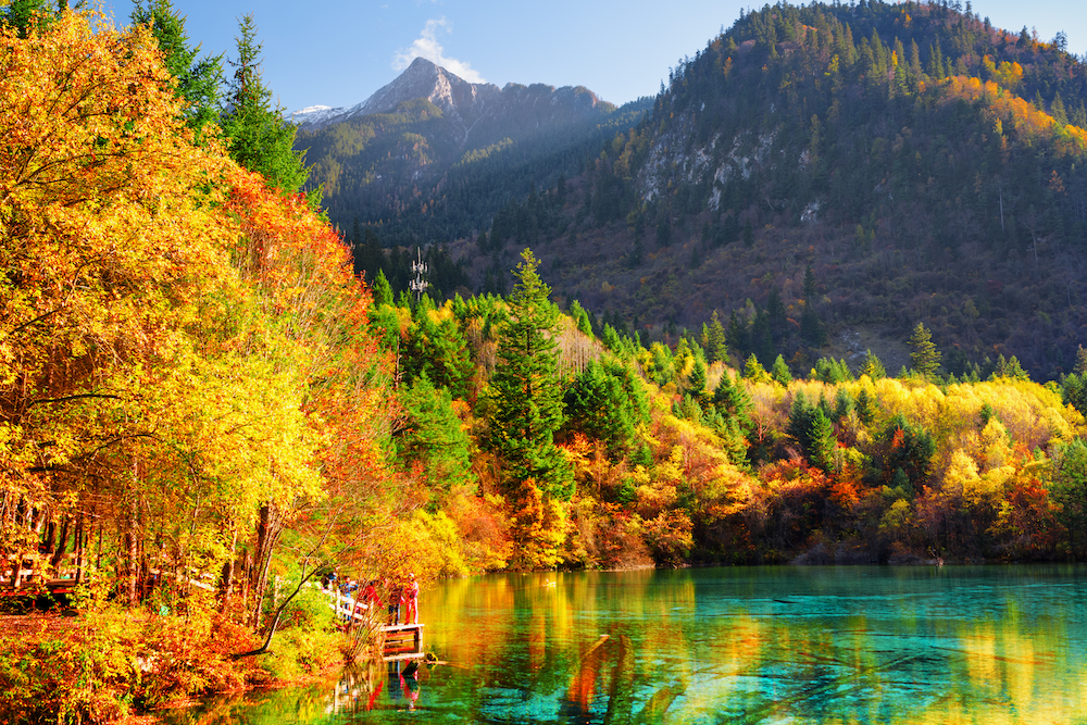 Perché qui la natura ha creato un lago che sembra irreale, un gioiello di colori incastonato tra montagne sacre, con un autunno che regala scenari da film.