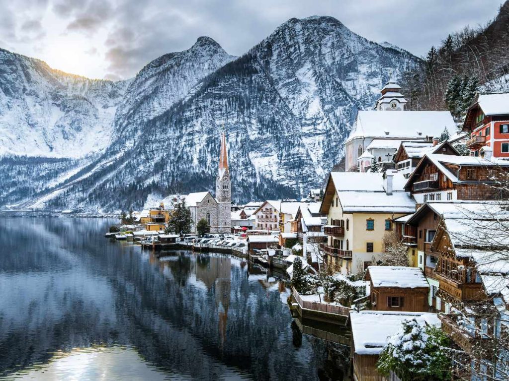 Le case storiche di Hallstatt sono costruite l’una sopra l’altra su un lembo di terra così stretto da mostrarsi sospese sull’acqua scura del lago. In inverno, il peso della neve sui tetti a punta e il fumo grigio che esce dai camini danno vita a un’immagine stratificata, in cui l’unico rumore è lo scricchiolio del legno in un borgo che non conosce auto.