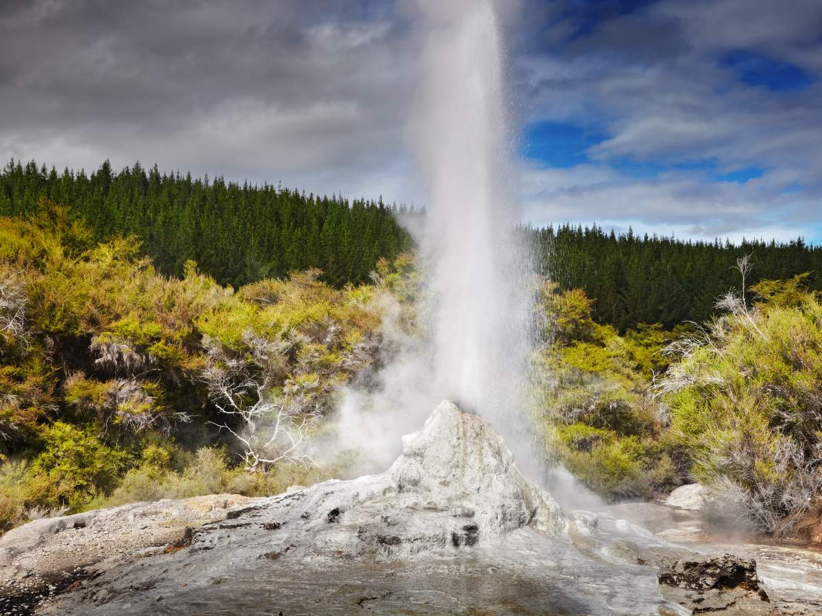 Il centro dell’azione è la valle geotermale di Te Puia, un posto in cui la terra pare letteralmente “bollire”. Da queste parti, infatti, il geyser Pohutu mette in scena uno spettacolo di termodinamica naturale: l’acqua piovana penetra nel sottosuolo, viene surriscaldata in condotti geotermici, accumula pressione e infine viene espulsa ciclicamente in una colonna di vapore alta 30 metri.