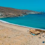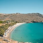 Siamo nelle Cicladi, tra Mykonos e Andros, ma l’atmosfera cambia radicalmente: niente beach club affollati, niente file per una foto al tramonto. Qui il paesaggio è aspro, le colline sono punteggiate di muretti a secco e villaggi bianchi, il meltemi soffia forte e le spiagge restano autentiche.