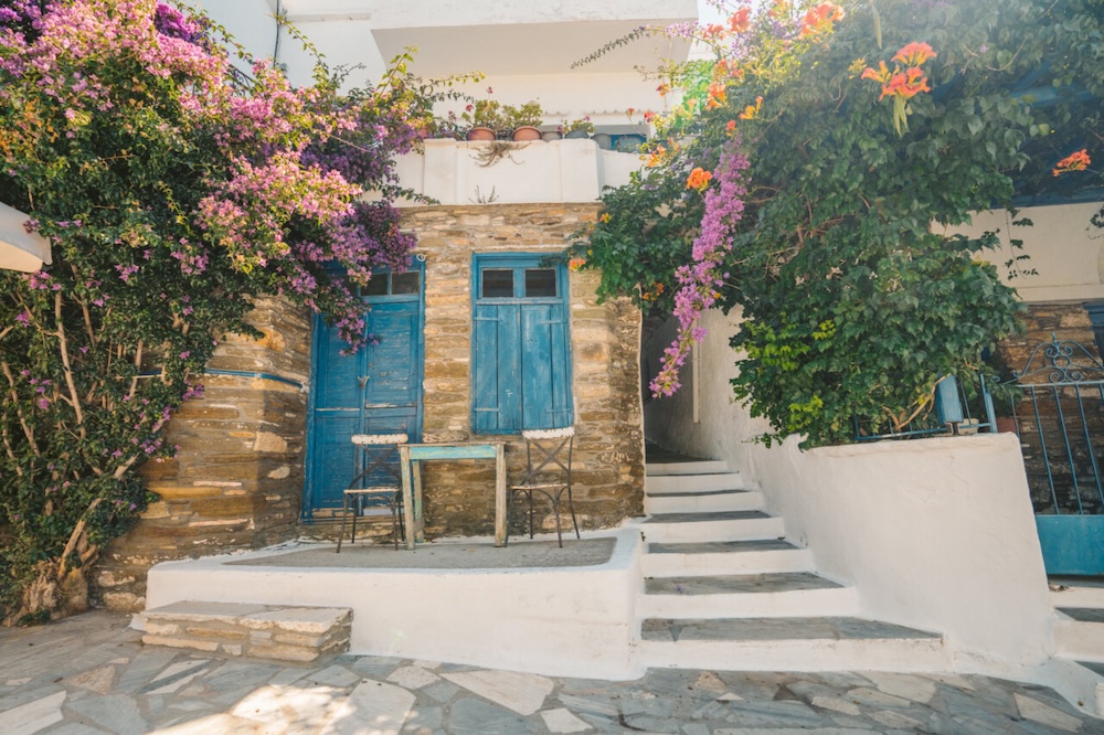 Siamo nelle Cicladi, tra Mykonos e Andros, ma l’atmosfera cambia radicalmente: niente beach club affollati, niente file per una foto al tramonto. Qui il paesaggio è aspro, le colline sono punteggiate di muretti a secco e villaggi bianchi, il meltemi soffia forte e le spiagge restano autentiche.