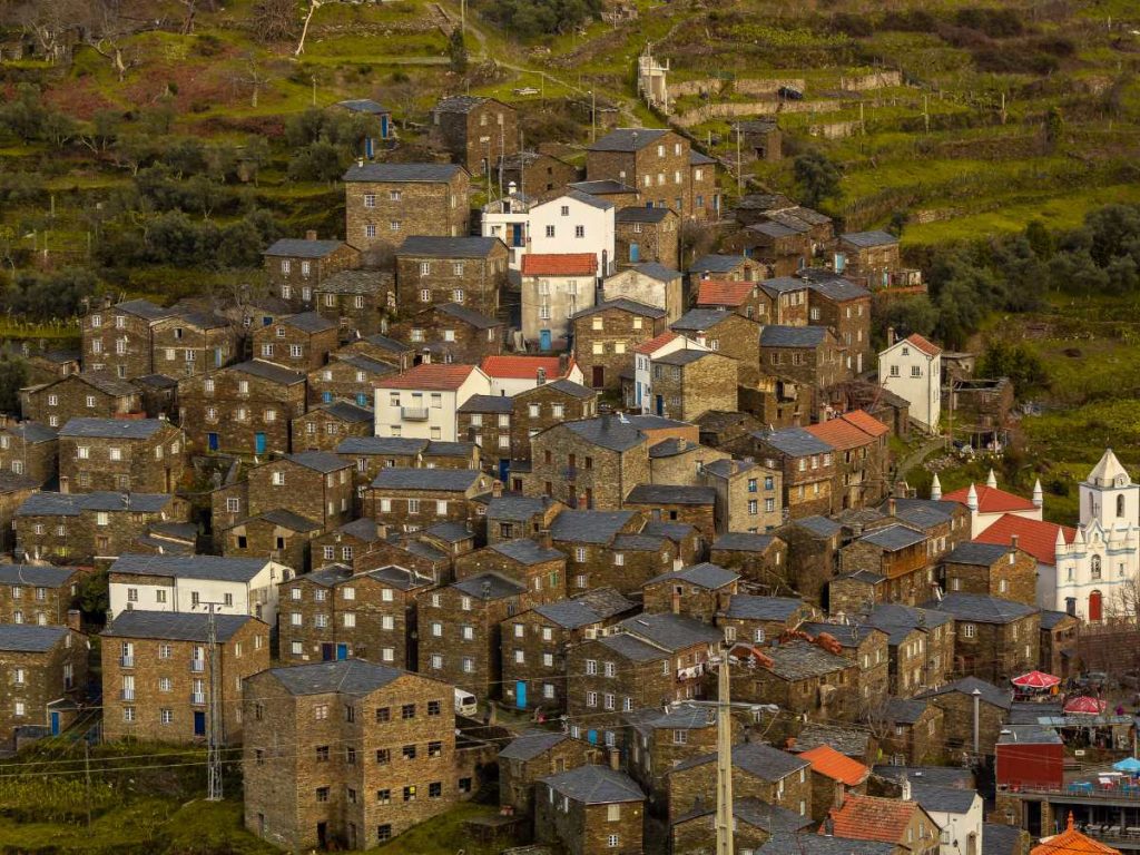 Abbarbicato sui ripidi pendii della Serra do Açor, questo borgo è costruito interamente in scisto, una pietra scura che lo rende quasi invisibile tra le rocce. A creare un contrasto che ha dell’incredibile è il colore blu intenso delle porte e delle finestre: si dice che, a causa dell’isolamento, questo fosse l’unico colore disponibile nell’emporio della zona.