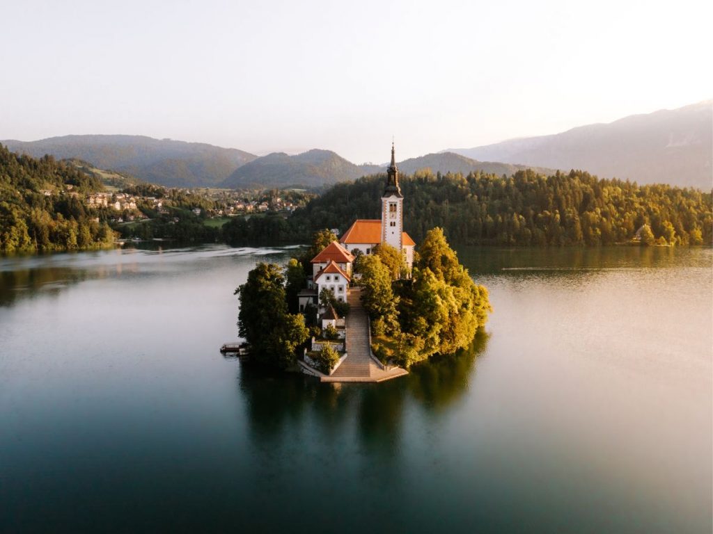 A Bled il lago si apre tra montagne morbide e verdi, e al centro emerge una piccola isola con la sua chiesa, isolata ma perfettamente visibile. Sopra, il castello pare sospeso su un promontorio, a dominare l’acqua e le barche che scivolano lente. In autunno, il lago riflette i colori caldi degli alberi e le torri medievali, rendendo il paesaggio una scena quasi fiabesca.