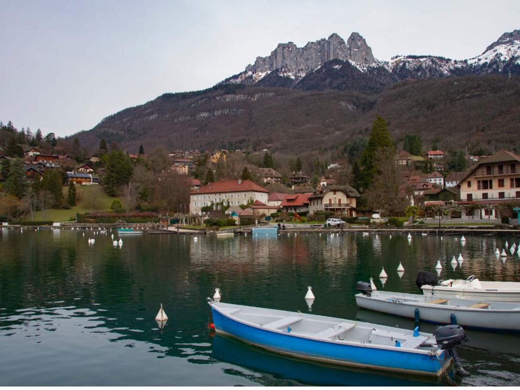 A Talloires le acque del lago lambiscono dolcemente le rive punteggiate di chalet dai tetti spioventi e dalle facciate in legno chiaro. Il villaggio pare in bilico tra il blu profondo del lago e le montagne che lo abbracciano, le cui cime si tingono di oro e rame con l’autunno. Passeggiando tra le stradine tranquille, si percepisce il ritmo lento della vita lacustre, fatta di piccoli caffè, barche ferme e panorami che si riflettono nell’acqua come quadri viventi.