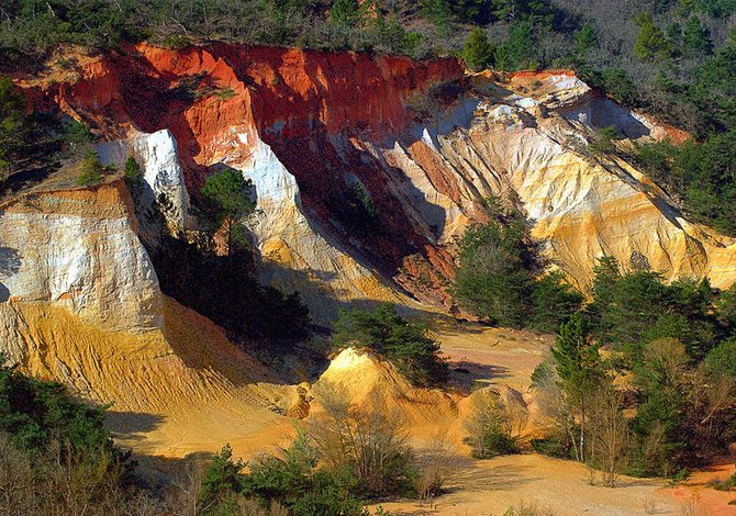 A un’ora e mezza dal mare turchese della Costa Azzurra si trova un luogo particolare, a metà tra il Grand Canyon americano e le distese rosse di Marte. Si chiama Itinerario delle Ocre in Provenza e sono i giacimenti di ocra del massiccio del Luberon, dove fin dai tempi dei Romani le ocre vengono prelevate e usate in vari procedimenti di colorazione.
