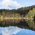 Il sentiero ad anello di 5 km si snoda tra passerelle, morene e rive dorate, offrendo riflessi di pura magia autunnale.