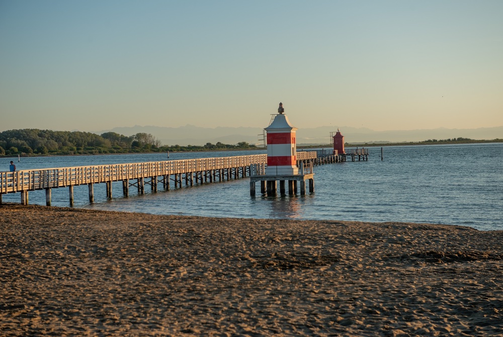 È un momento perfetto per osservare i casoni che si specchiano nell’acqua e, all’orizzonte, le montagne del Friuli che si accendono di rosso. Un’esperienza contemplativa che unisce natura, silenzio e luce.