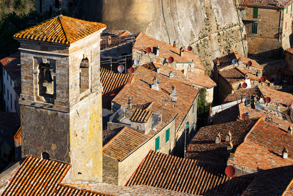 Sorano d’inverno è un labirinto di pietra e ombra. Le case scavate nel tufo i vicoli stretti le scale che entrano nella roccia emergono con forza quando la vegetazione si ritira. Il borgo si esplora lentamente seguendo i livelli e i cambi di luce
