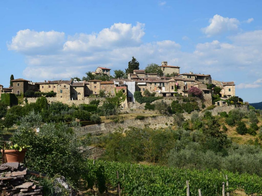 MONTEFIORALLE – Un occhio ellittico che osserva le colline del Chianti, con vicoli e case disposti a cerchi concentrici.