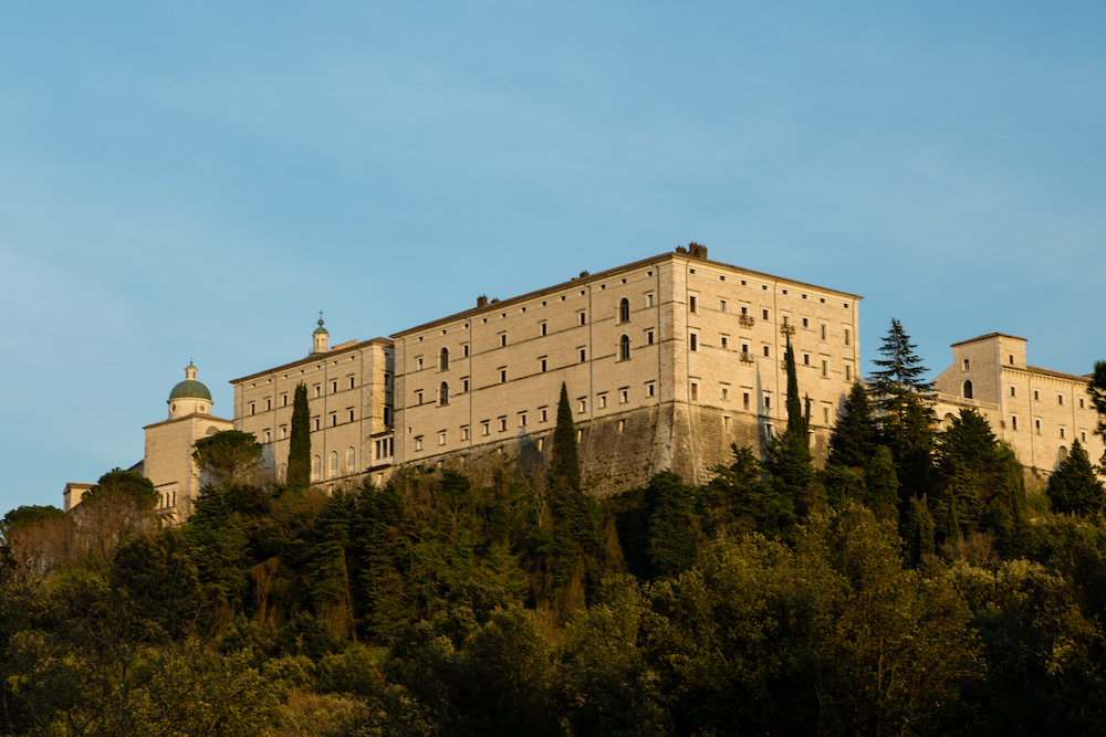 L’abbazia domina la valle come un faro. Attorno, piccoli centri e campagne organizzate per secoli dal lavoro monastico. Un luogo simbolo della continuità culturale europea.