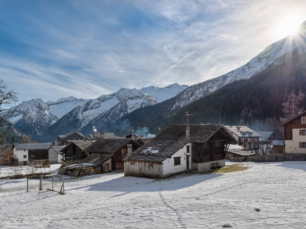 Infine Macugnaga, che prende vita ai piedi della maestosa parete est del Monte Rosa (l’unica di tipo himalayano nelle Alpi). Culla della cultura Walser, in inverno muta in una sorta di museo a cielo aperto in cui le antiche case in legno e pietra del XVII secolo, con i loro tipici ballatoi per l’essiccazione della segale, emergono da coltri di neve altissime.