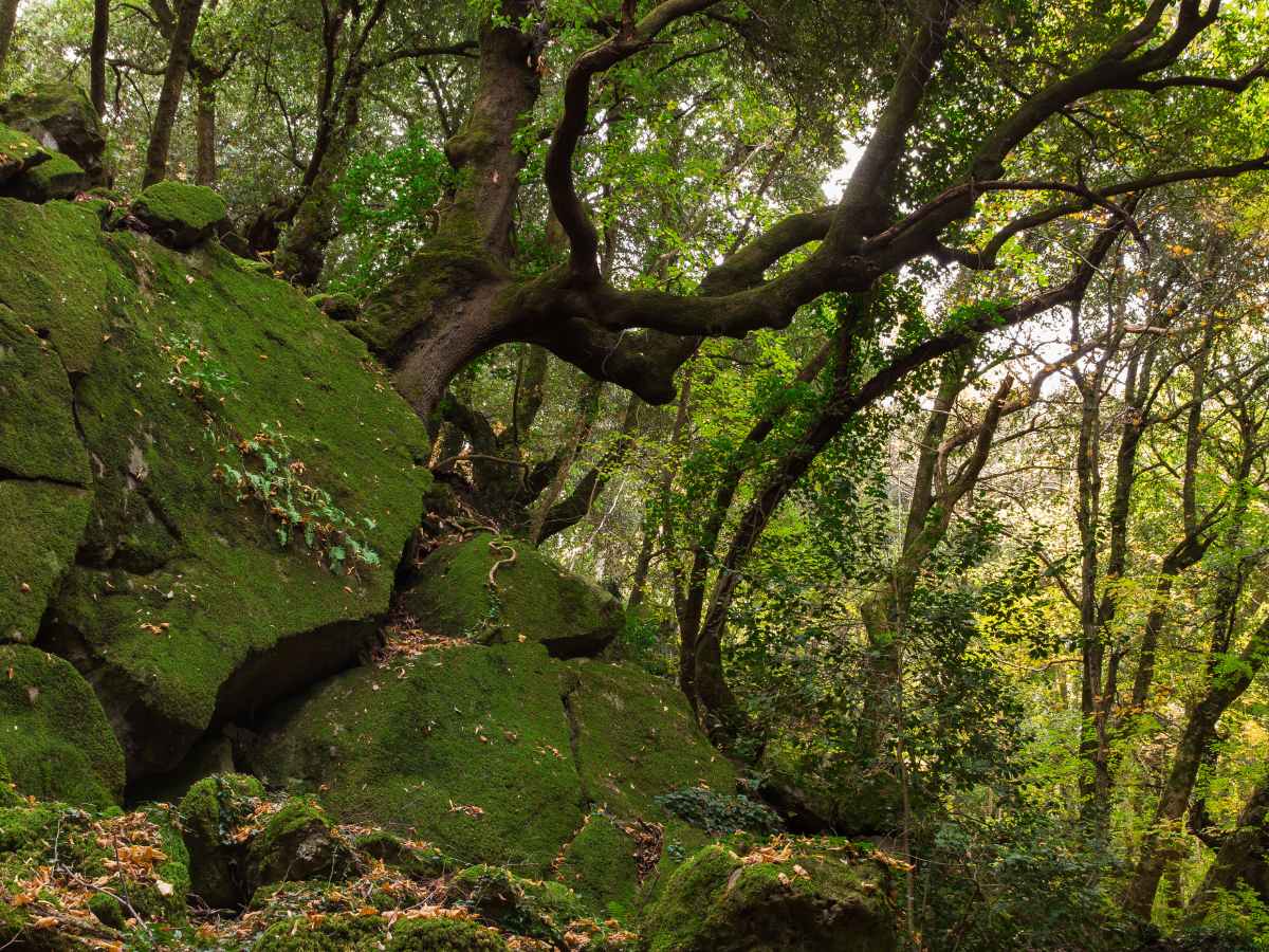 Proprio tra questi massi lavici affioranti, la vegetazione ha trovato un habitat fertile, dando vita a esemplari vegetali che superano i 25 metri di altezza. Tronchi nodosi dal diametro imponente si intrecciano con il muschio, creando uno scenario che la prestigiosa rivista National Geographic ha ribattezzato con il soprannome di Bosco di Biancaneve. Le fronde di faggi, olmi montani e lecci secolari filtrano la luce solare, restituendo un’atmosfera ovattata e fuori dal tempo.