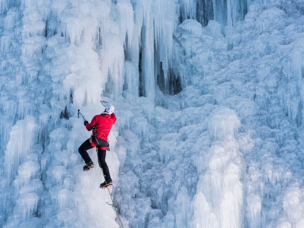 ICE CLIMBING SULLE CASCATE GHIACCIATE DELLA VAL DI RABBI - Sfidare la forza di gravità scalando imponenti architetture di cristallo azzurro richiede precisione e coraggio, offrendo la possibilità di interagire fisicamente con flussi d'acqua che l'inverno ha trasformato in sculture verticali di rara bellezza.