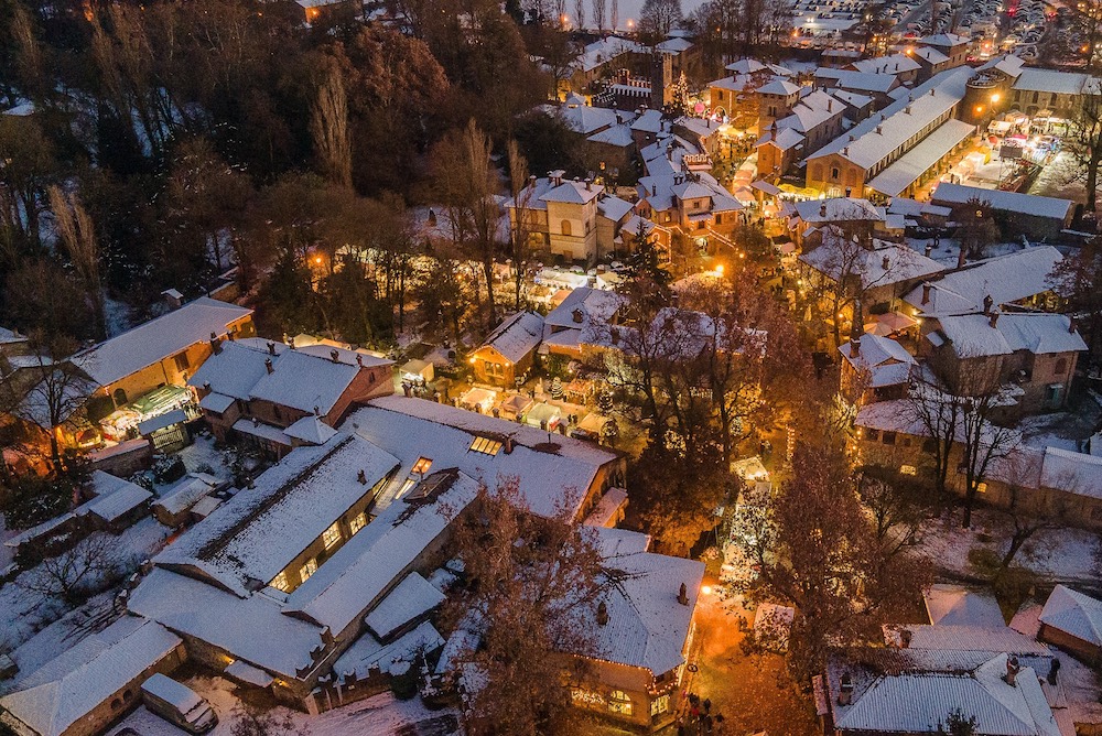 Ora il cuore storico della cittadina emiliana utopica (nata dal sogno del Duca Giuseppe Visconti di Modrone, che visse fra il 1879 e il 1941), si accende ancora di più con i colori della fiaba, trasformando le sue vie medievali in un vero e proprio magico Villaggio di Natale. Con un tocco di meraviglia surreale.