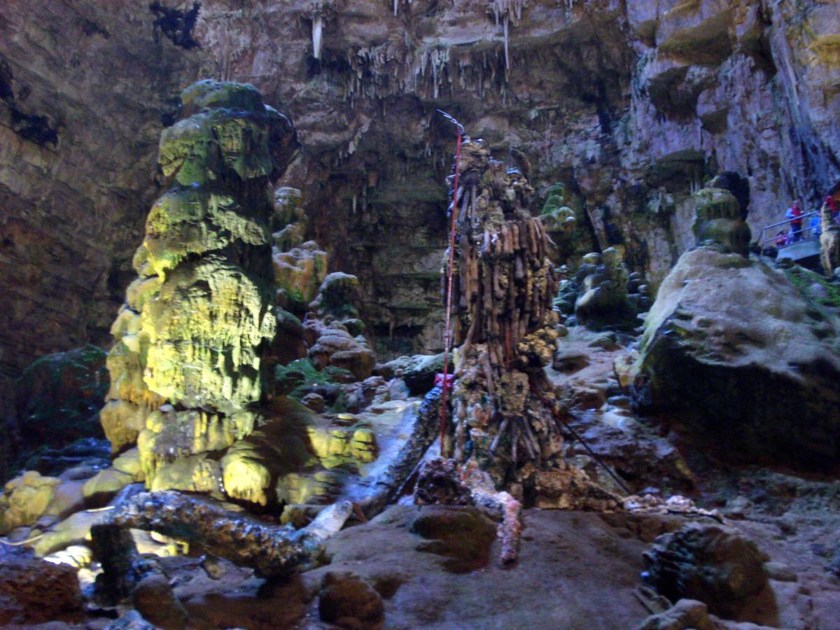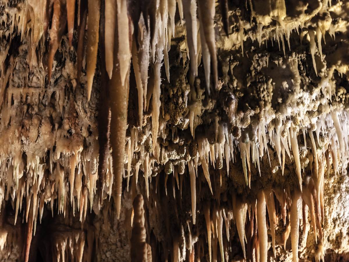 Ci sono pure numerose stalagmiti, che però risalgono dal pavimento assecondando il lento gocciolamento dei minerali. Il ritmo di crescita di queste strutture risulta impercettibile ai nostri sensi, poiché servono decenni per aggiungere appena pochi millimetri di spessore. La densità dei depositi calcarei rende le ampie sale gallerie d’arte naturale, prive di interventi esterni, modellate esclusivamente dalla chimica del carbonato di calcio.