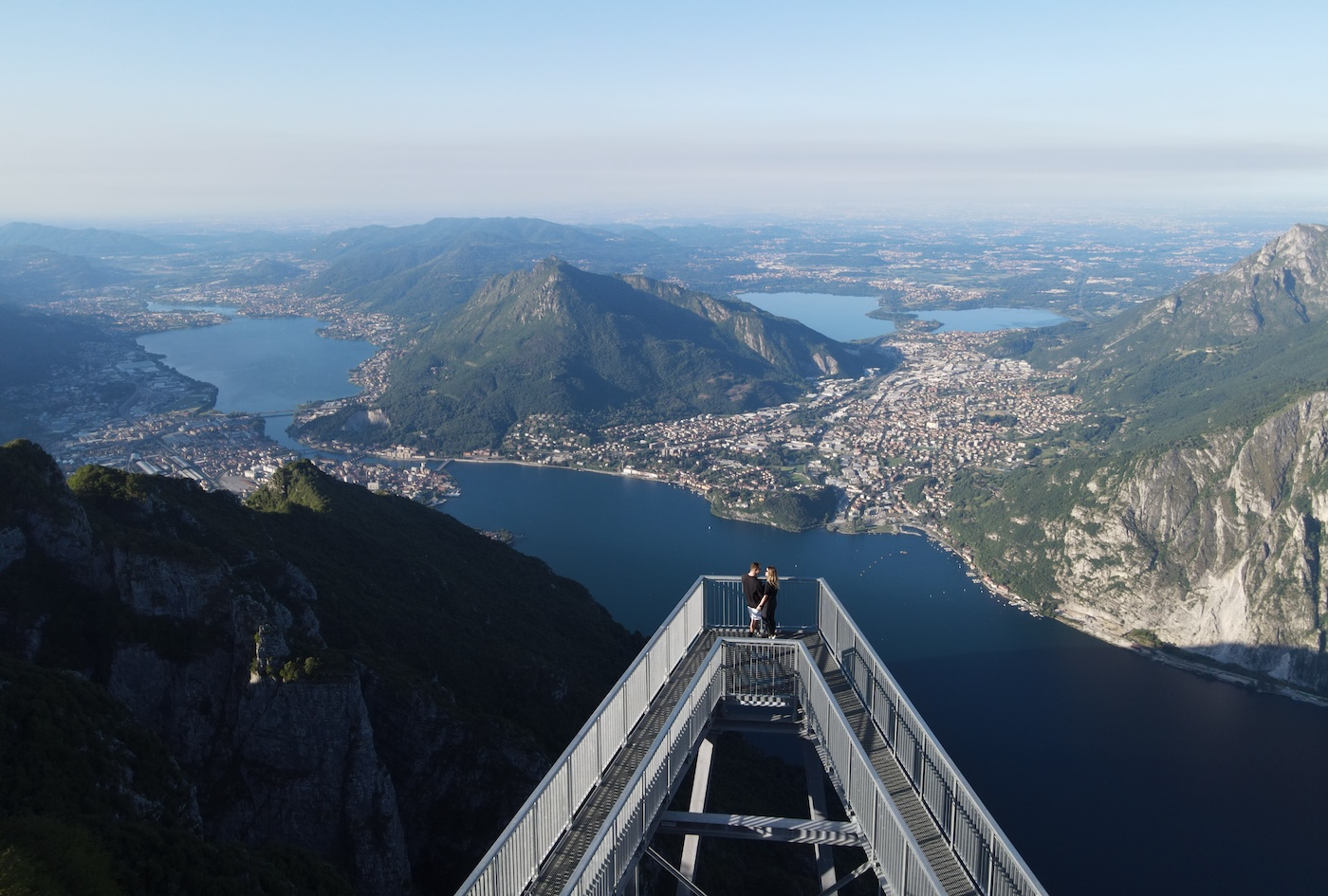 A 19 km da Lecco, sui Piani Resinelli, c’è una passerella panoramica sospesa nel vuoto: 12 metri di griglia metallica con il lago di Como quasi mille metri più in basso. Costruita nel 2021, è uno dei belvederi più spettacolari della Lombardia.