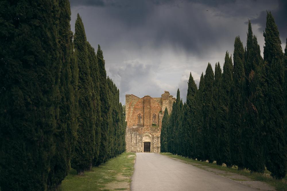 Tra Siena e Massa Marittima si trova una delle immagini più iconiche del gotico italiano: l’Abbazia di San Galgano, senza tetto e aperta al cielo.