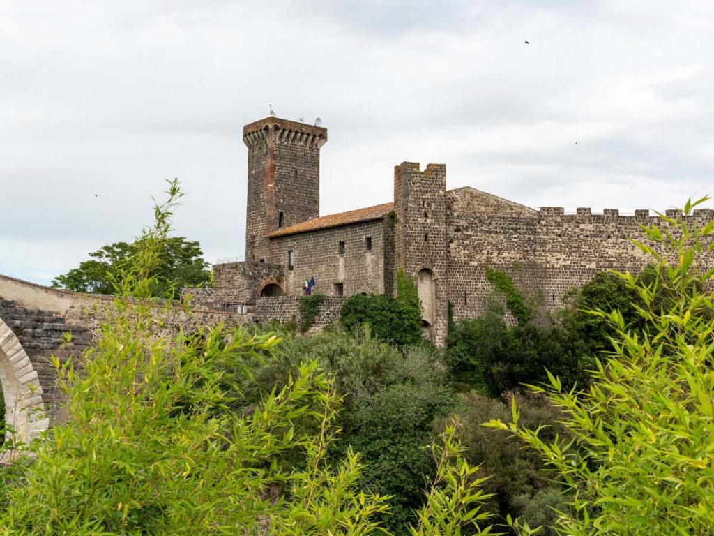 Situato presso un antico ponte etrusco sul fiume Fiora, il Castello dell’Abbadia di Vulci sorge in una posizione strategica lungo la via Francigena. Stando ad alcune tradizioni locali, la struttura ospitò i Cavalieri Templari o fu utilizzata come punto di guardia e accoglienza per i pellegrini diretti a Roma. La fortezza, nata su un precedente insediamento benedettino, proteggeva l’accesso alla zona e conserva lo stile severo tipico delle guarnigioni medievali.