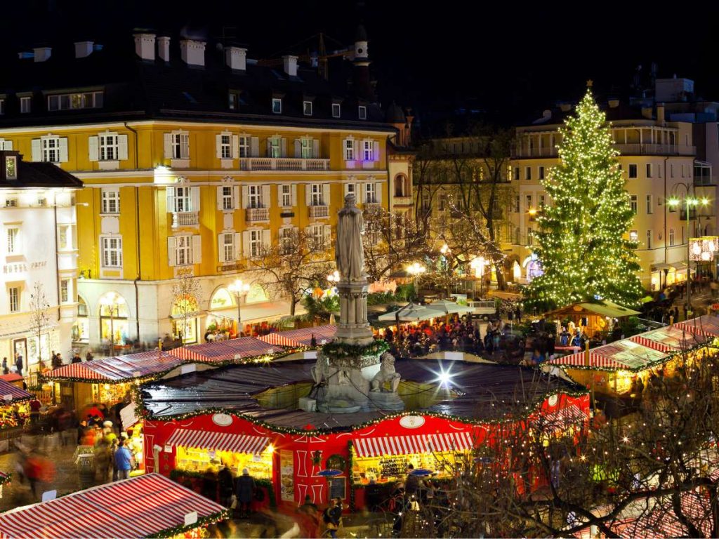 Ogni inverno Piazza Walther è il vero e proprio cuore pulsante del Natale altoatesino con il Mercatino di Natale di Bolzano. Le casette in legno, perfettamente allineate tra palazzi storici e montagne innevate, ospitano artigianato locale, decorazioni natalizie e specialità gastronomiche tipiche, dalla cioccolata calda allo speck e ai dolci tirolesi. L’atmosfera è resa ancora più magica dai concerti di Natale, dagli spettacoli folkloristici e dai laboratori per bambini, che animano la piazza in ogni weekend. Il mercatino 2025/2026 è previsto dal 27 novembre 2025 al 6 gennaio dell’anno prossimo.