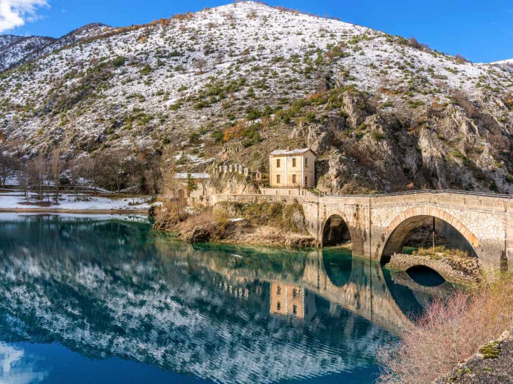 In inverno, il canyon abruzzese si trasforma in una forra d’altri tempi in cui le ripide pareti di roccia nuda sono segnate da spettacolari cascate di ghiaccio e stalattiti giganti che pendono dai costoni rocciosi. Il fragore del fiume è smorzato dal gelo, mentre la nebbia che sale dal fondo della gola avvolge la vegetazione ghiacciata: l’atmosfera riesce a essere sia spettrale che magnetica.