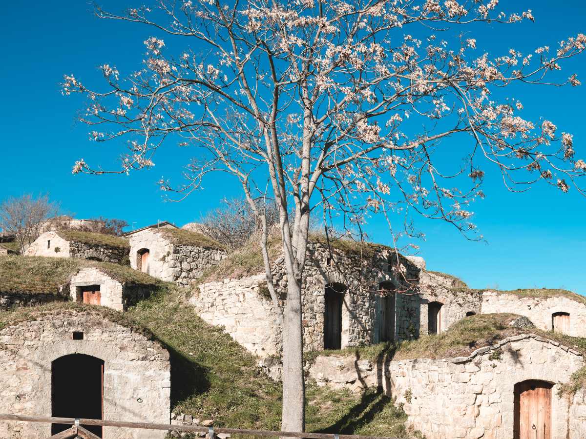 Le coperture potevano essere a botte o a crociera, mentre l’esterno veniva sigillato con terra riportata, generando un effetto mimetico che cambia aspetto in base alla stagione: tetti fioriti in primavera, pareti verde intenso in estate, superfici chiare e silenziose in inverno. Il risultato è un insieme di elementi tecnici e soluzioni pratiche che trasmettono una profonda conoscenza dei materiali e del clima locale.