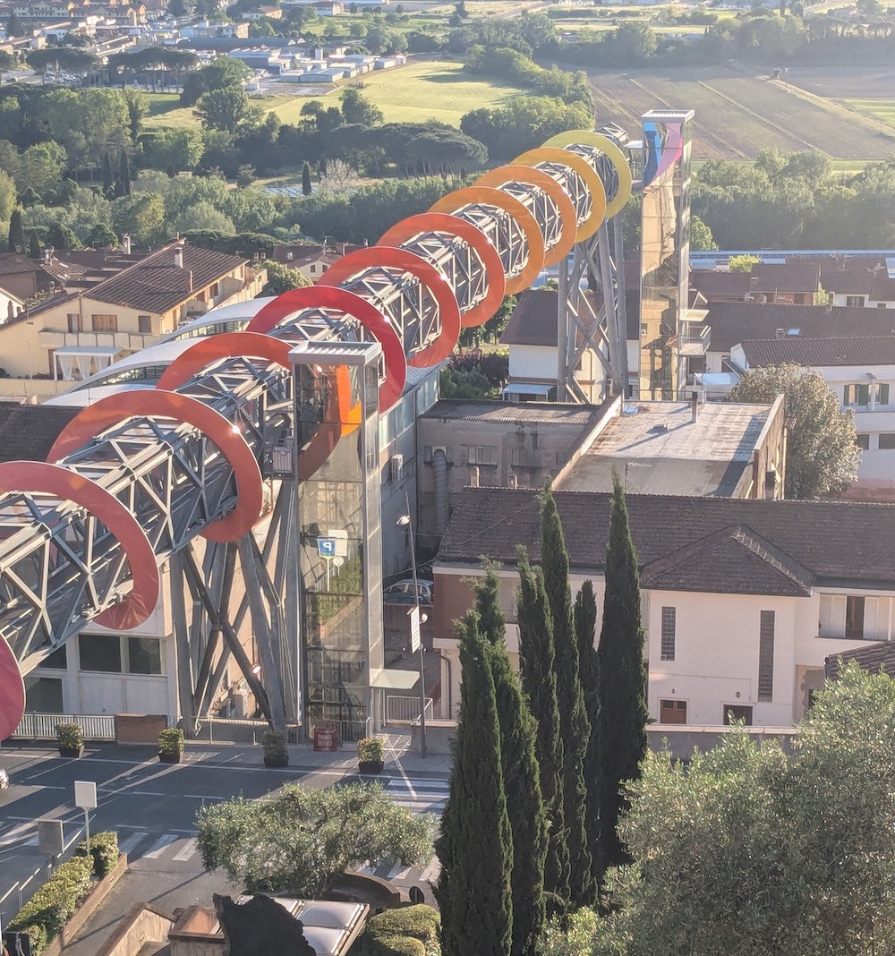 Gli utili vengono anche reinvestiti: scuola di musica per centinaia di ragazzi, biblioteca aperta fino a tardi, ascensori per collegare il borgo alto, microcar elettriche condivise, sostegno alle famiglie più fragili, defibrillatori diffusi ovunque. E l’arte contemporanea a cielo aperto, per cu ormai Peccioli è un polo d’attrazione internazionale.