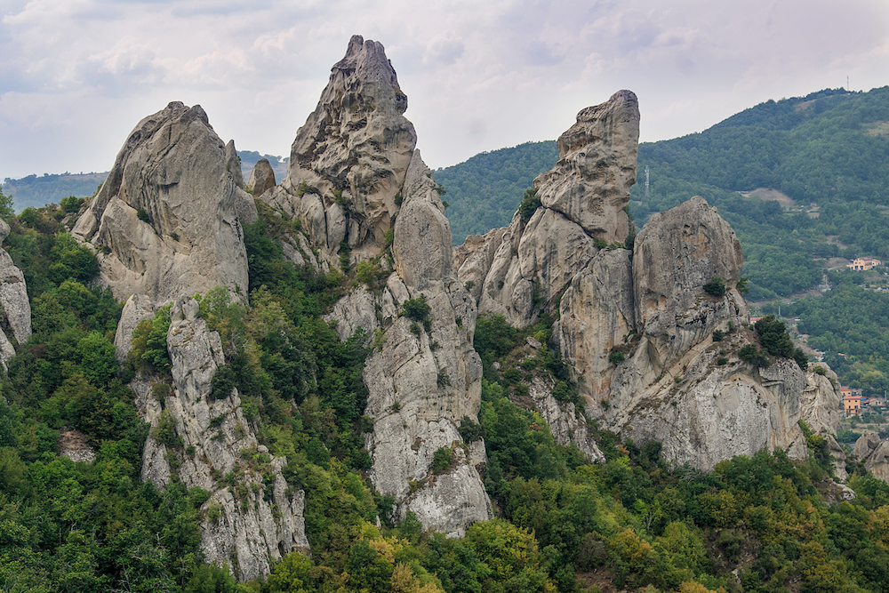 Pietrapertosa guarda Castelmezzano dall’alto, separata da una valle profonda e scenografica. I due borghi sembrano fronteggiarsi, come se dialogassero da secoli attraverso lo spazio. Si trova no entrambi nel Parco Regionale Gallipoli Cognato Piccole Dolomiti Lucane.