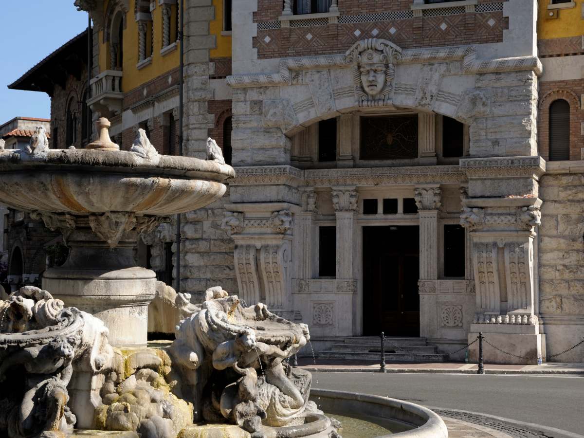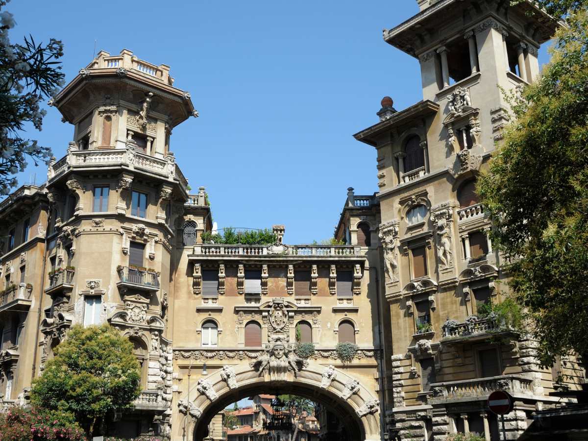 Attorno alla piazza si affacciano gli edifici più emblematici, tra cui spicca il Villino delle Fate. Si tratta di un immobile che vanta una facciata asimmetrica incredibile: è ricca di logge, affreschi e materiali diversi come marmo, ferro battuto e legno. Le decorazioni celebrano Firenze, Venezia e Roma attraverso immagini di Dante e Petrarca, dando vita a un ponte visivo tra le grandi capitali dell’arte italiana.