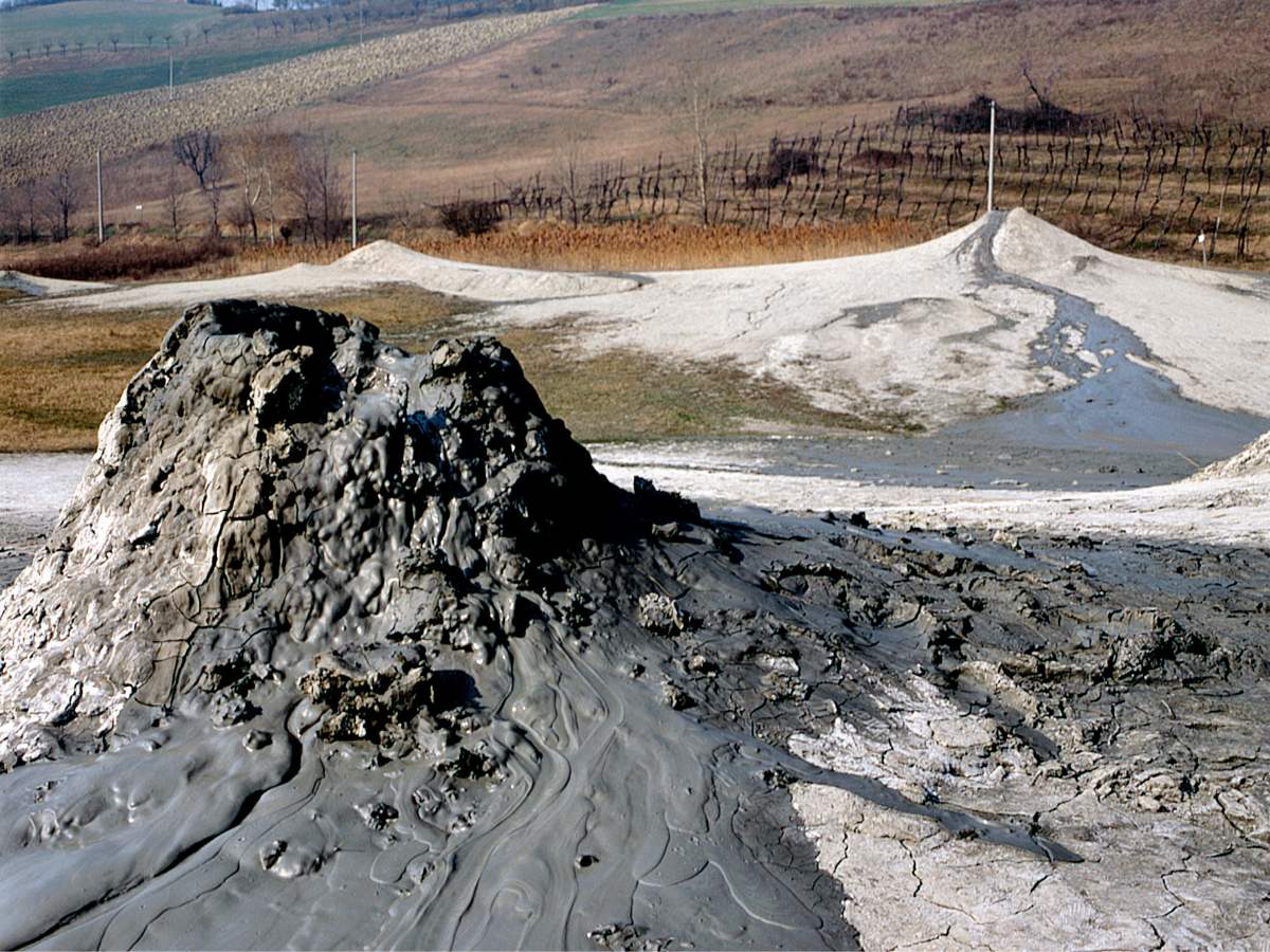 Oggi quel gas cerca una via d’uscita. La pressione spinge quindi il metano verso l’alto che, lungo la risalita, incontra l‘acqua salata fossile e le argille superficiali, mescolandole in una melma grigiastra. Il risultato è un’eruzione fredda: il fango sbuca fuori dal terreno e forma piccoli crateri. E a render il tutto ancor più incredibile è che non si avverte calore, ma solo il sibilo del gas che scappa. Questo fenomeno trasforma la collina di Fiorano in un deserto minerale in cui l’odore di idrocarburi sostituisce quello dell’erba. In sintesi, le “Salse” sono vulcani di fango, apparati che prendono il nome dal sapore salato di questo fango liquido.