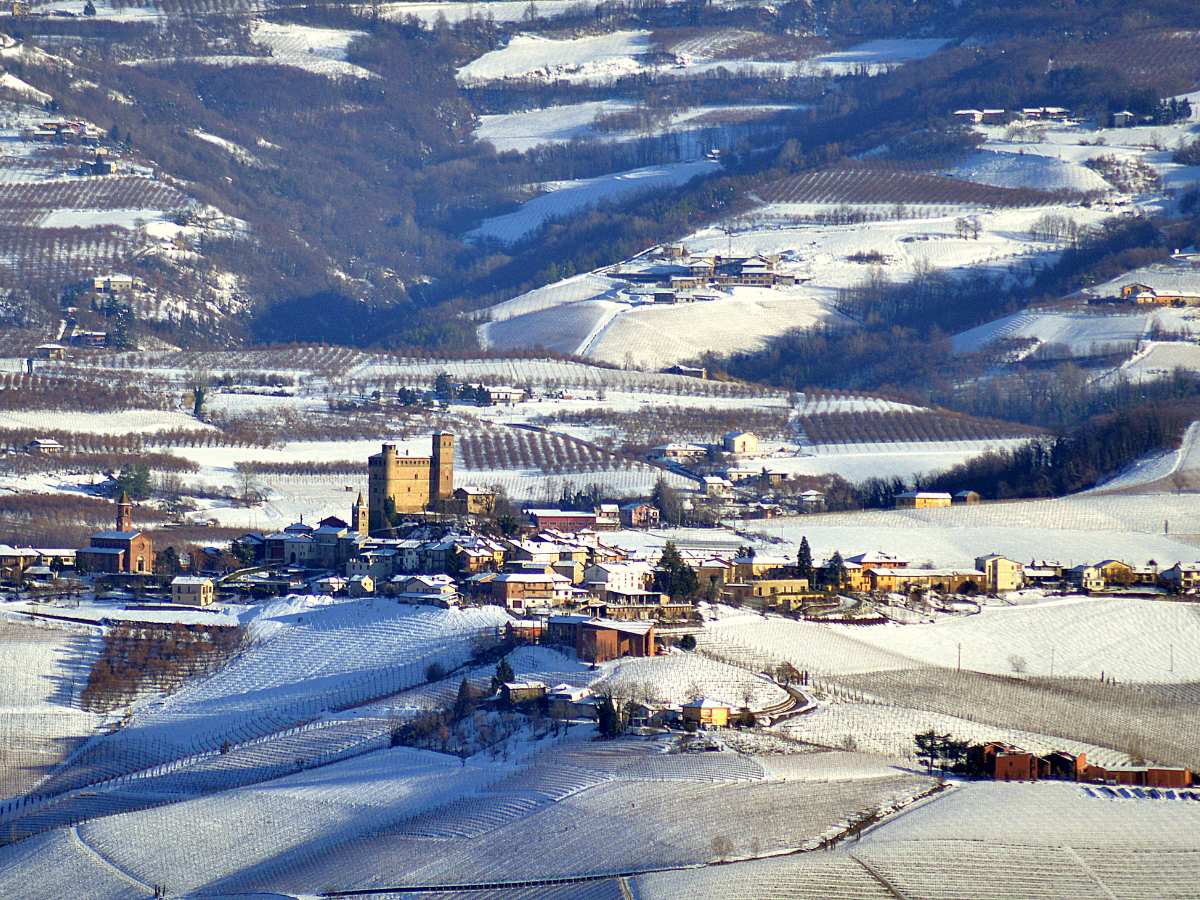 Una volta toccato il fondovalle, il tracciato impone una risalita verticale verso la frazione di Perno. È questo il punto critico dell’escursione a causa di un dislivello positivo di circa 200 metri concentrato in meno di un chilometro, punto in cui il terreno è marna pura. Superata la cresta, il paesaggio si apre su un anfiteatro di vigne spoglie che, nel silenzio della nebbia invernale, restituiscono la dimensione più cruda e autentica del territorio.