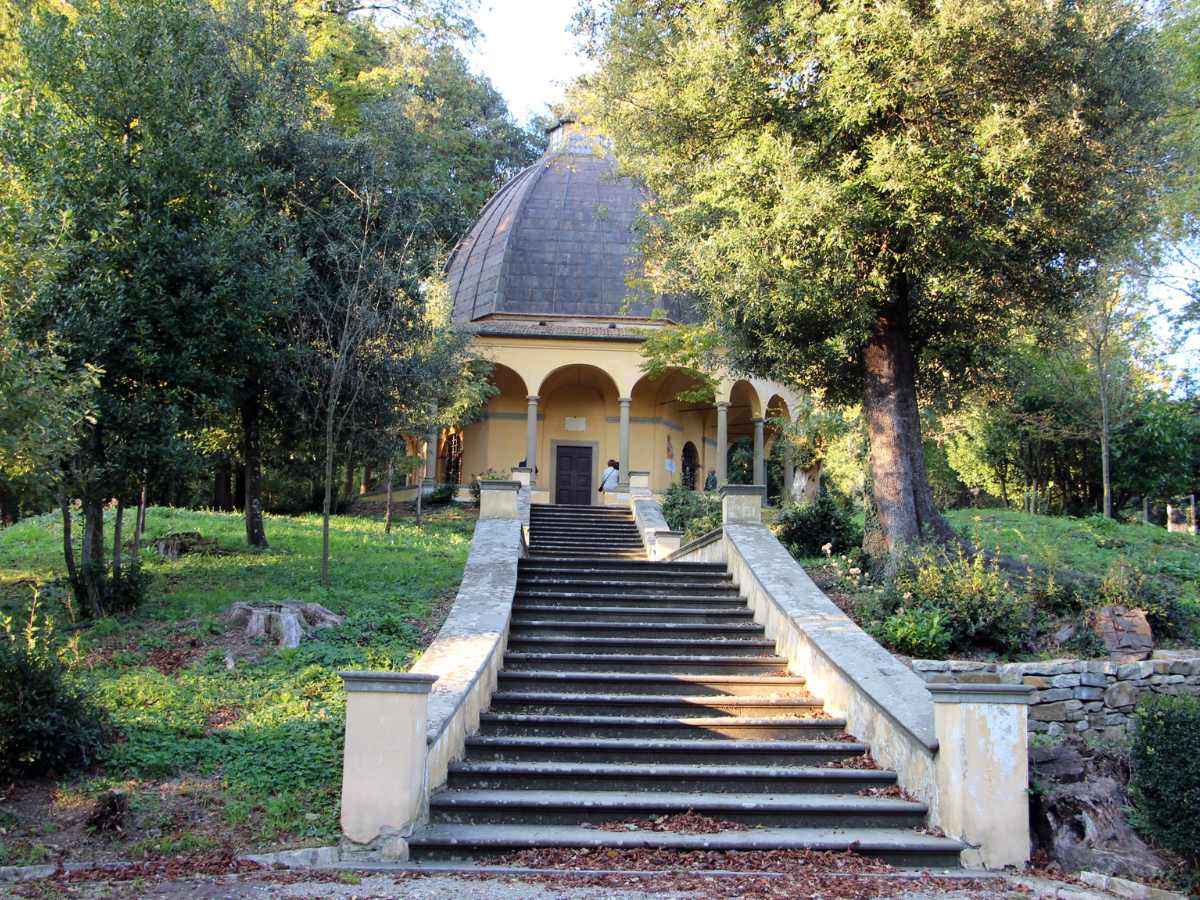 L’itinerario si conclude spesso davanti alla piccola chiesa a pianta esagonale situata in una zona elevata: la Cappella di Buontalenti. Questa costruzione rappresenta uno dei pochi edifici originali rimasti integri dal periodo mediceo e sfoggia una cupola che poggia su robuste colonne che delimitano un portico circolare perfetto per ammirare il panorama circostante.